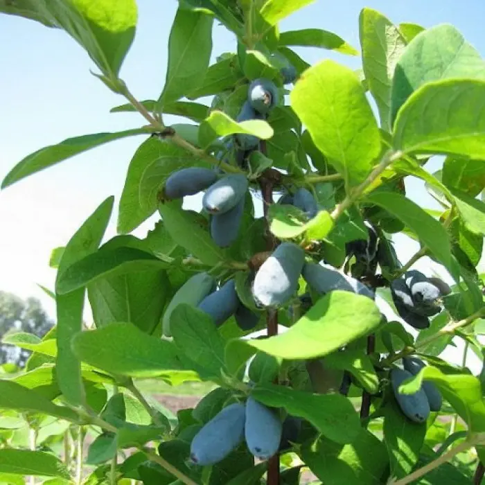 Жимолость Авача. Новый ранний, высокоурожайный сорт, выведен во ВНИИ растениеводства имени Н.И. Вавилова. Самобесплоден, сорта-опылители: Камчадалка; Золушка; Голубое веретено; Лазурная; Синяя птица; Мальвина; Томичка. Куст среднерослый, высотой до 1,5 м пышный, полураскидистый, диаметром 1,5–2,0 м. Скелетные ветви дугообразно изогнуты от основания, молодые побеги прямостоячие. Листья черешковые, ярко-зеленые, эллиптической формы, цельнокрайные, длиной до 6 см. Цветки парные, белые, душистые, расположены на концах ветвей. Плоды весом до 3 г, на кусте созревают не одновременно, но не осыпаются. Ягода вытянуто-овальной формы, длинной около 12 мм, темно-синей окраски с восковым налетом. Мякоть фиолетово-красная, сочная, сладкая, с небольшой кислинкой и легким земляничным ароматом. Неприхотлив, зимостойкость высокая.