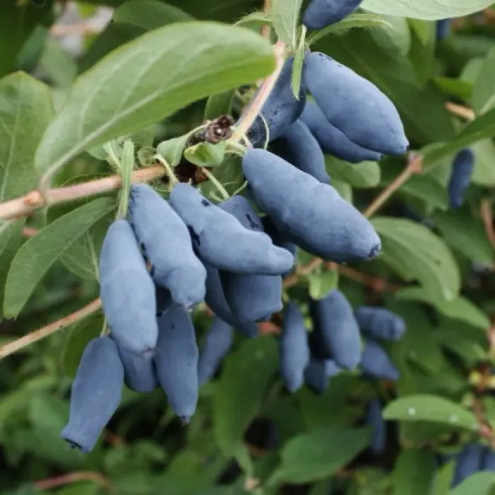 Жимолость Голубое веретено. Широко распространенный сорт. Плоды удлиненно-веретеновидной формы, длиной до 3 см. Масса 0,97 г. Вкус плодов сладковато-кислый с легкой горчинкой. Урожайность более 1,5—2 кг с куста. Спелые плоды могут осыпаться. Куст высокий (2,5 м) с обратноконической кроной. Листья удлиненно-овальные с заостренной вершиной, слегка вогнутые по средней жилке.