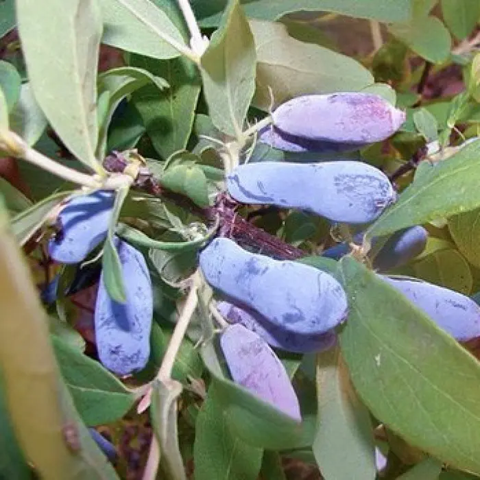 Жимолость Мальвина. Раннеспелое растение, плодоносящее в середине июня. Этот сорт — продукт Павловской гибридизации, полученный в Санкт-Петербурге. Плоды характеризуются крупным размером и весом одного до 1,1 грамма. Ягоды кисло-сладкого вкуса, удлиненные, светло-голубого оттенка, имеющие хорошо заметный восковой налет. Сорт универсального использования с высокой урожайностью, достигающей 3 кг с одного куста.