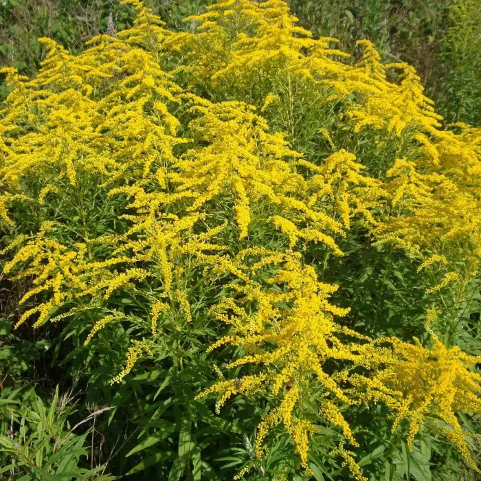 Solidago. Стебли у этого растения прямостоячие, сильные, слабо ветвистые, высотой 60-100 см. Листья очередные, ланцетовидные, с цельным или пильчатым краем. Эффектные крупные соцветия в виде кистей, метелок или щитков образуются в верхней части стеблей, они состоят из множества очень мелких цветочков желтого, золотистого, зеленовато-желтого. Корневище очень мощное и разветвленное, способствующее сильному разрастанию.